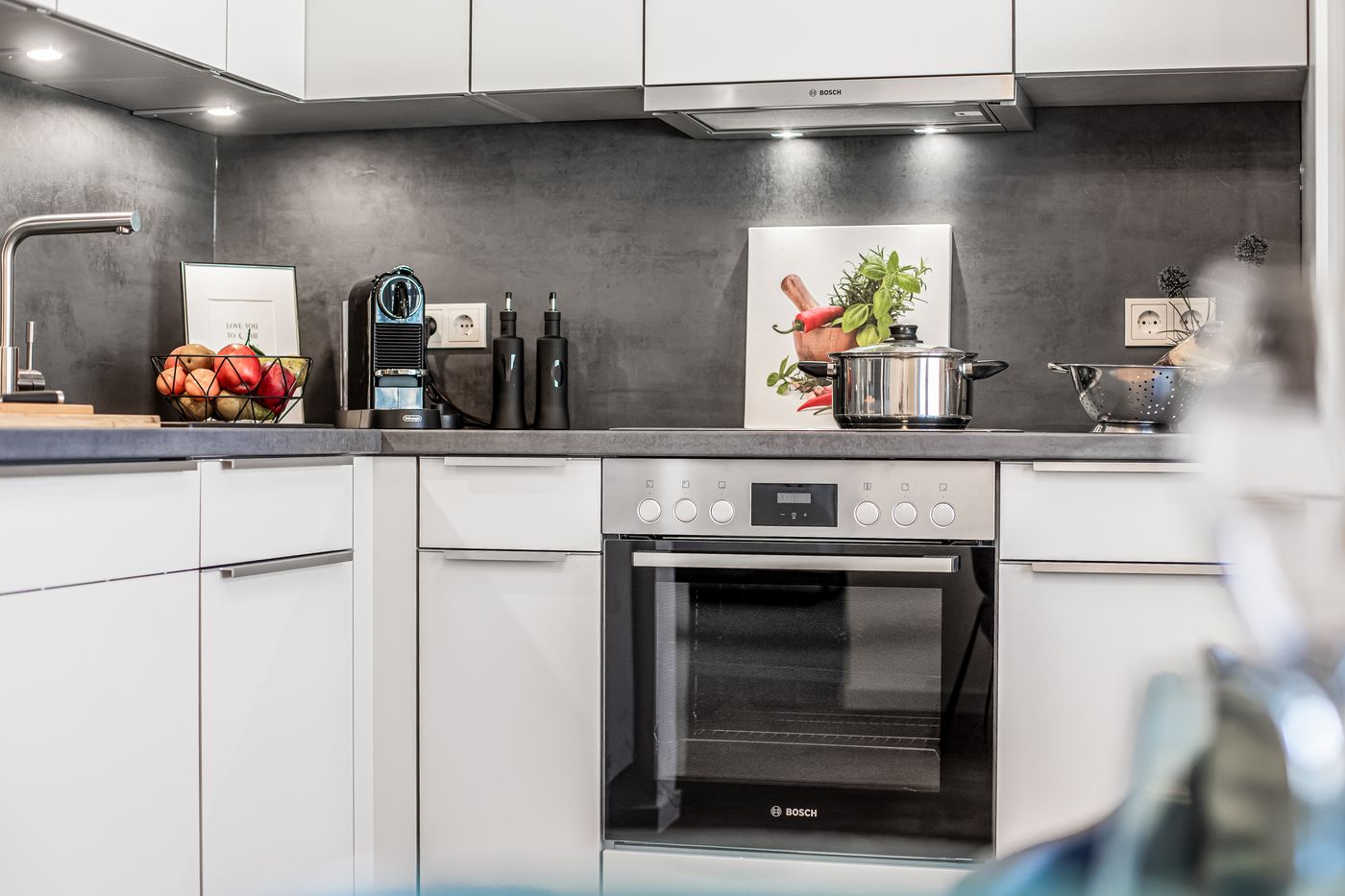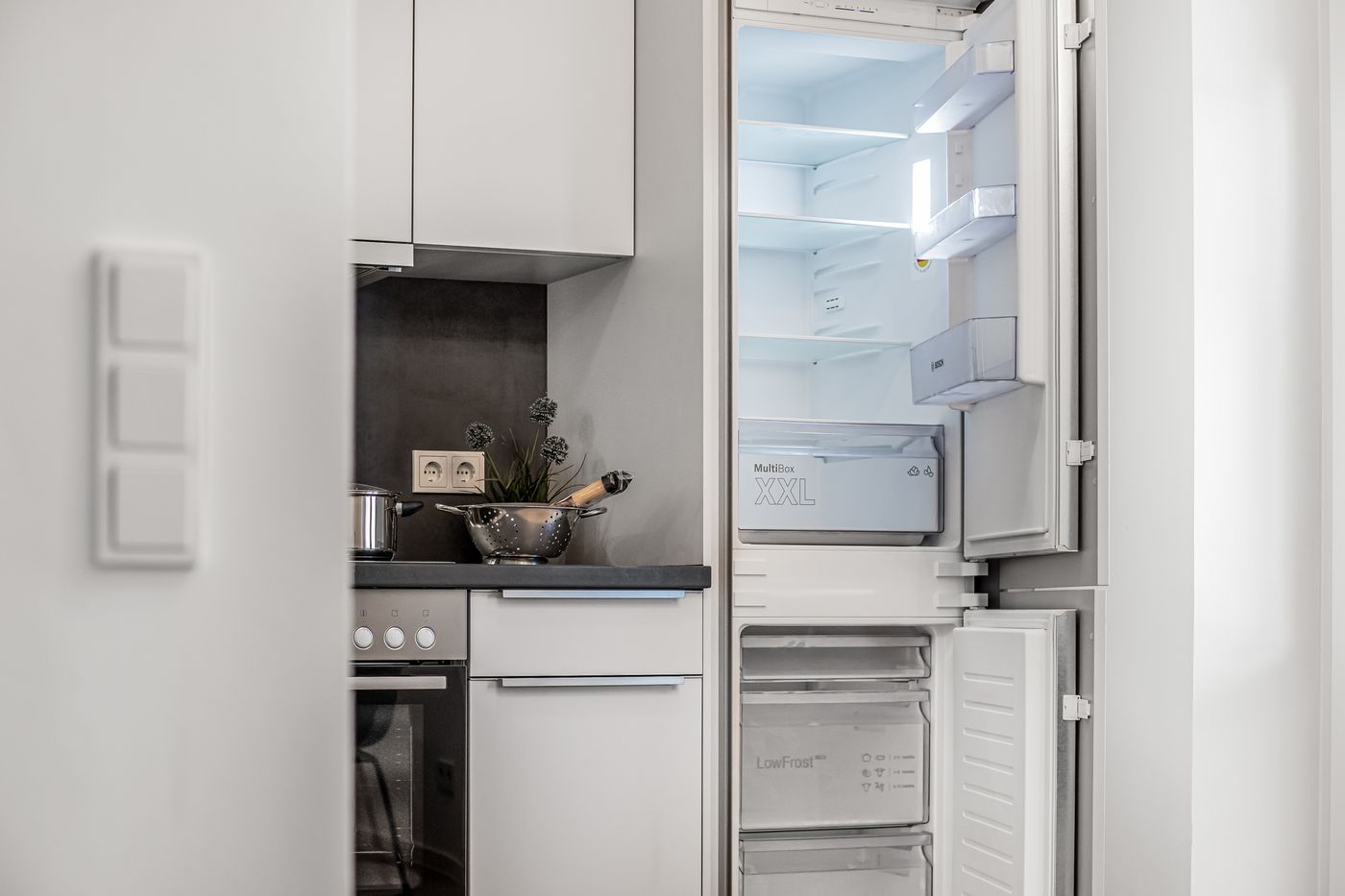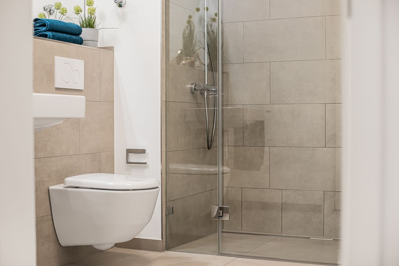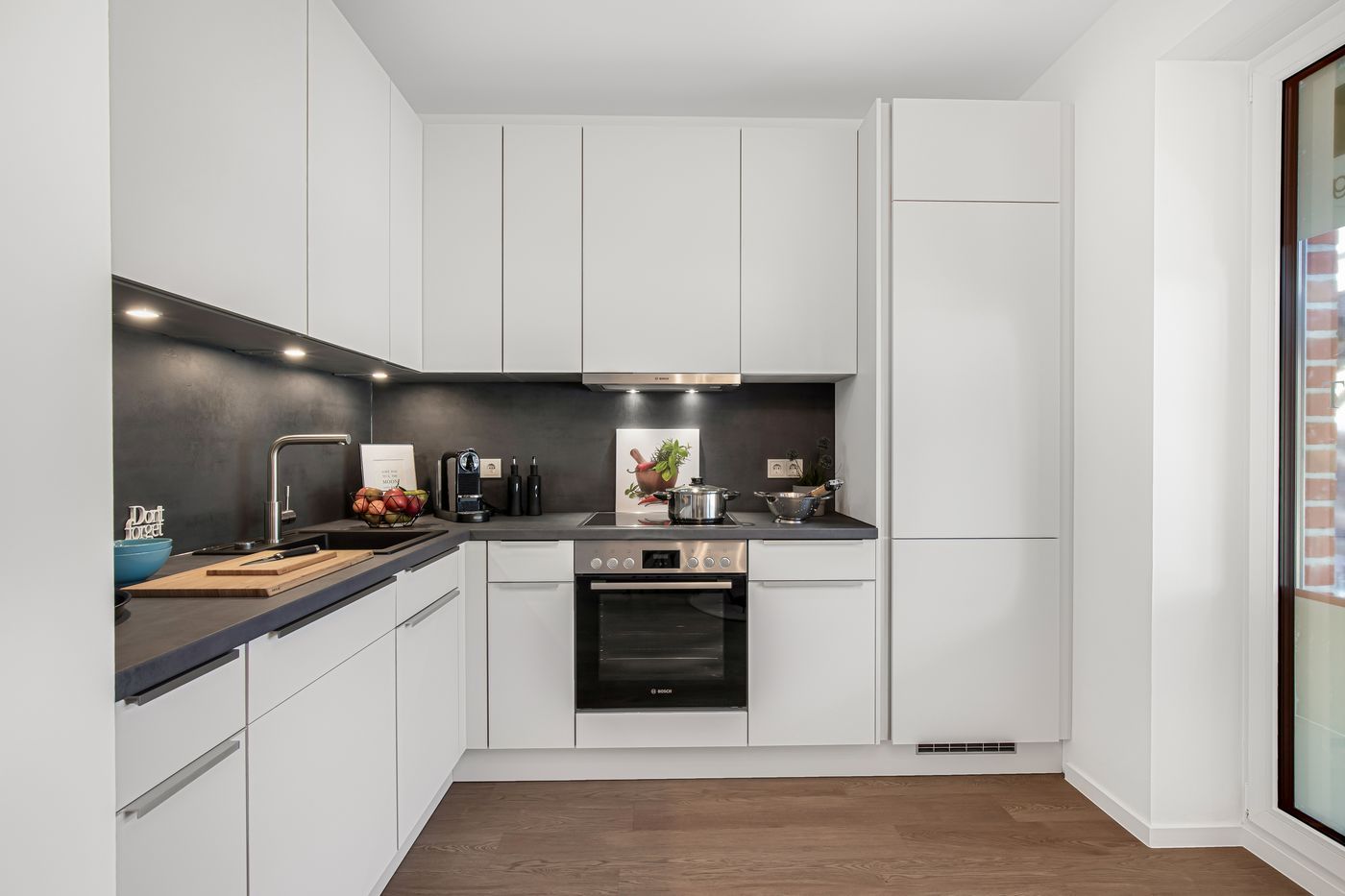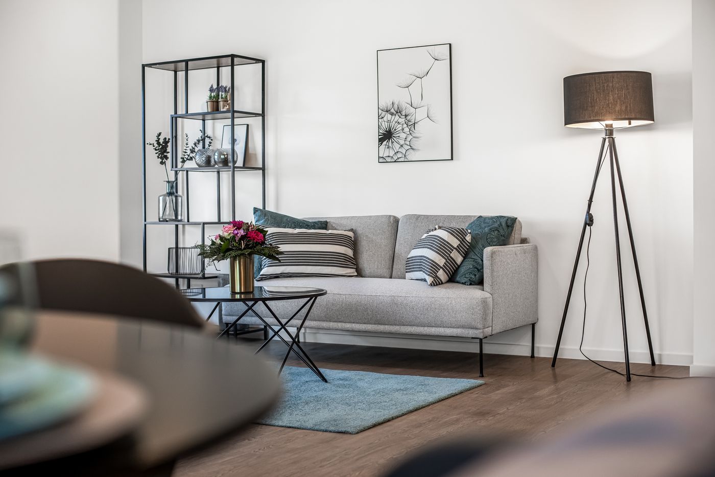 Bilder der Musterwohnung in der Nina-Zober-Straße 3 (Haus 2). Die Möblierung ist ein Gestaltungsvorschlag und gehört nicht zum Ausstattungsumfang.